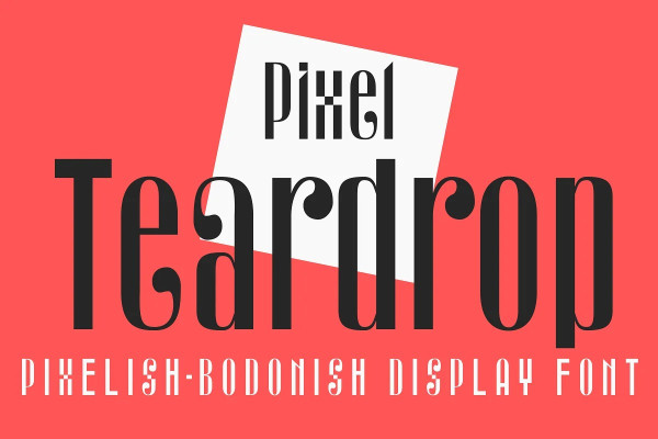 Pixel Teardrop Font is a unique and quirky display font combining machine-like rigidity of pixel fonts with calligraphic tradition. It really shines at large sizes, and is perfect for logos, posters and magazine titles.