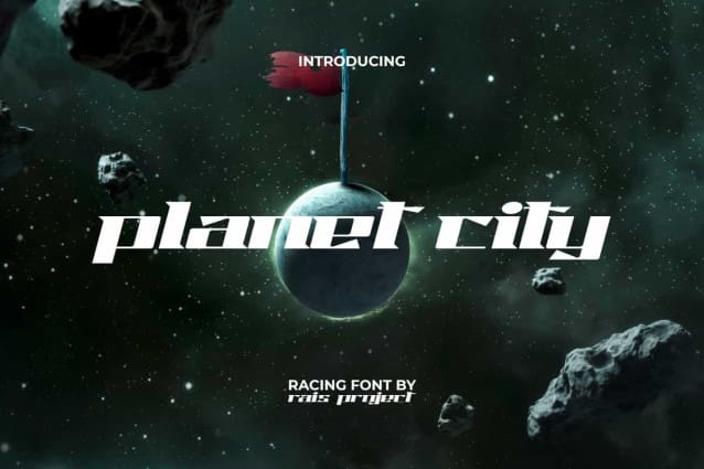 Planet City Font is an impressive racing display font with a modern look. This font consists of thick and thin lines that create interesting shapes. It will be good for any designs, such as stationery, advertisement, brand image, cover, custom design, invitation, label, marketing material, menu, poster, product packaging, quotes, website page, and more!