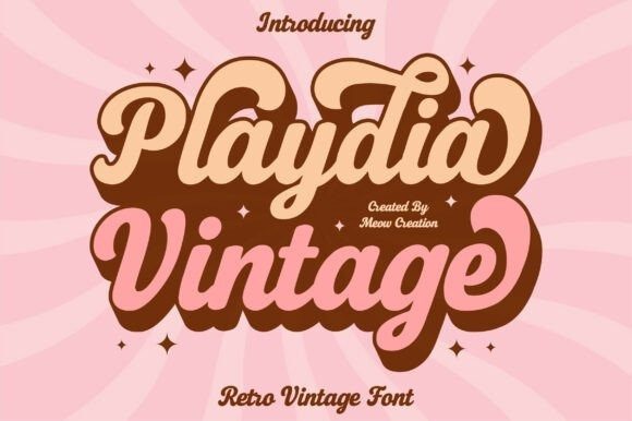 Add a cheerful retro touch to your next project with Playdia Vintage — where groovy vibes meet timeless style!