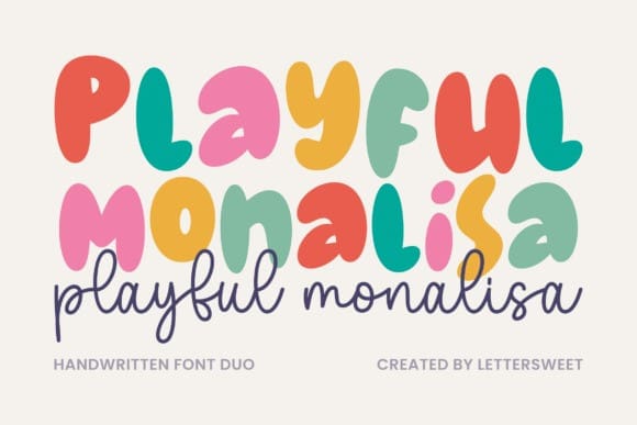 Playful Monalisa Font is a fun and lively handwritten font duo designed to bring joy and creativity to your projects. The bold, bubbly uppercase letters are perfect for eye-catching headlines, while the elegant script adds a charming personal touch. Whether you’re designing children’s books, playful branding, greeting cards, or social media posts, Playful Monalisa will make your text stand out with its cheerful and whimsical aesthetic.
