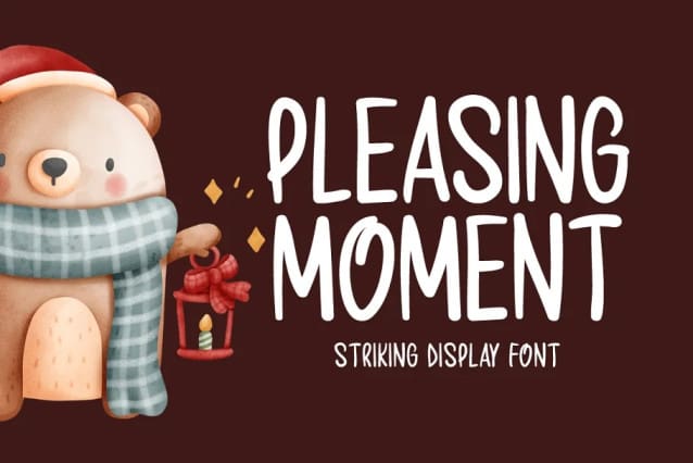 Pleasing Moment Font is a striking display font. It is perfectly suited for stationery, logos, t-shirt, paper, print designs, website headers, photo frames, flyers, music covers, posters, image sliders, and much more.