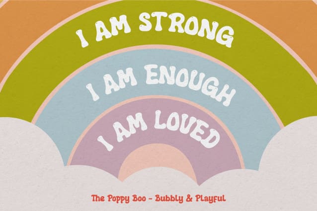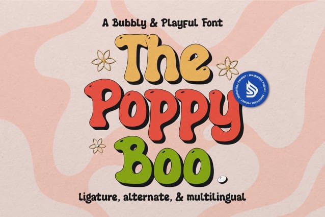 Poppy Boo Font | Bubbly And Playful Font, from Denustudios, suitable for any projects such as: logos, branding projects, homeware designs, product packaging, mugs, quotes, posters, shopping bags, t-shirts, book covers, name card, invitation cards, greeting cards, label, photography, watermark, special events, and all your other lovely projects that need a Bubbly And Playful Font taste.