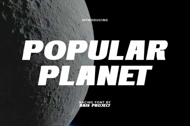 Popular Planet Font is a modern chic racing display font, created by RaisProject. This font can perfectly realize the appearance of a racing theme and can be paired with other types of fonts. It will be good for any designs, such as stationery, custom design, signage, brand image, advertisement, invitation, label, marketing material, poster, product packaging, quotes, website page, and more!