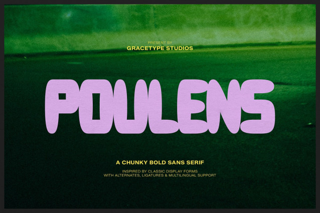 This font is used only for demos (Demo license). If you want to use this font for commercial use please contact: https://creativemarket.com/gracetype_studio/292037013-Poulens-Chunky-Bold-Sans-Serif