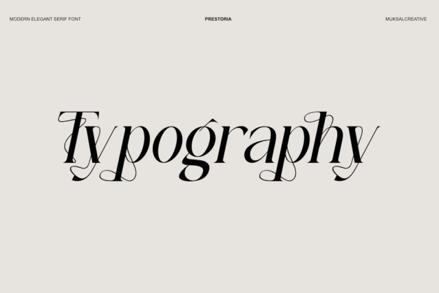 Prestoria Font is a modern elegant serif typeface that blends timeless sophistication with contemporary design. Crafted with refined high-contrast strokes and graceful curves, Prestoria delivers a luxurious yet balanced appearance, making it perfect for both editorial and display use.