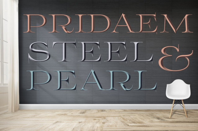 PridaEm Font – A set of colored fonts, created with inspiration from metallic shine: aluminum, beryl, copper, gold, pearl and steel. Vector colorful letters allow you to create headlines, banners or advertising slogans in any size.