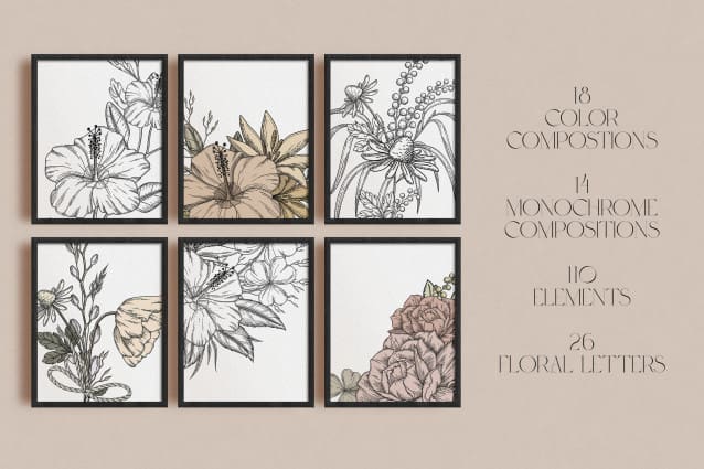 Probity font! This casual and creative typeface comes loaded with 95 language support, alternate & ligature glyphs plus clip art floral compositions and elements. From unique vintage logos to trendy Instagram posts or even special wedding invites; reinvent yourself every day thanks to its retro-nostalgic botanical illustrations which will create a powerful brand identity for any project you can think about.