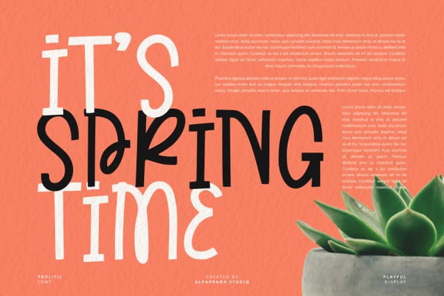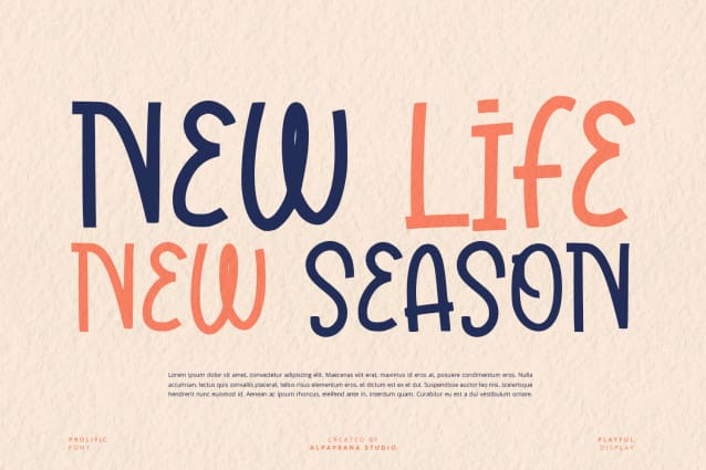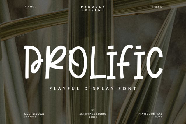 Prolific Font is a display font with authentic and playful feels. It will be perfectly used for Branding, Logo Design, Lettering, Logotype, Clothing, Poster, magazine, packaging, posters, shopping bags, t-shirts, book covers, photography, special events and other design project.