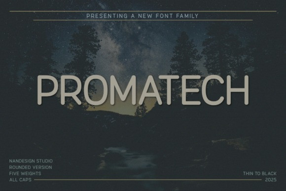 Promatech Rounded Font is a modern all-caps sans serif font family designed to bring clarity, warmth, and bold personality to your creative projects. With its soft-rounded edges and sleek, geometric construction, this font is both highly legible and aesthetically balanced across five versatile weights: Thin, Light, Regular, Bold, and Black.