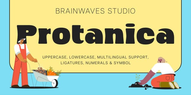 Protanica Font is a bold retro typeface with a touch of minimalism and semi-rounded edges, making it clean and ideal for minimalist retro designs. It includes uppercase, lowercase, numbers, symbols and function characters, along with multilingual support and standard ligatures.