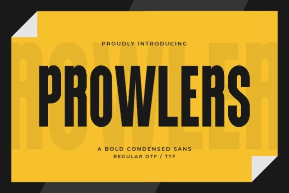 Prowlers Font – a bold condensed sans font that prowls through your designs with strength and impact! With its commanding and compact letterforms, “Prowlers” leaves a lasting impression in any project. Each character is meticulously crafted to showcase boldness and versatility, making it perfect for attention-grabbing headlines, striking logos, modern posters, and more.