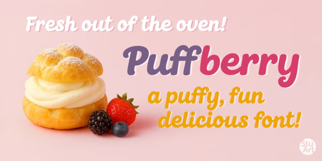 Puffberry delivers a perfect blend of fun and polish to logo lettering, packaging, apparel, or social media content.