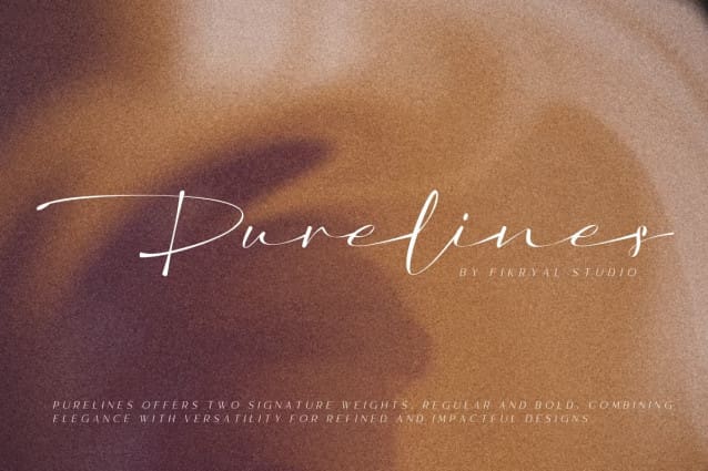 This font is made for personal use. Get the full version of the fonts if you want to use it for commercial purposes by purchasing the licenses here: https://creativemarket.com/FikryalStudio/289237890-Purelines-%E2%80%93-Elegant-Signature-Font?u=fontlot123