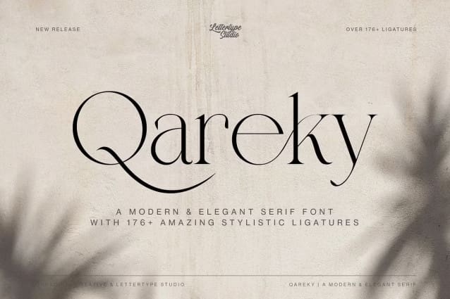 Qareky Font is a modern and elegant chic serif font with a classic style inspired by 18th-century typography. Perfect for sophisticated branding, editorial design, web typography, and more. These fonts offer timeless appeal with clean lines, geometric and luxurious details, ensuring your projects stand out with elegance and style. Ideal for designers seeking versatility and refinement in their typography choices.