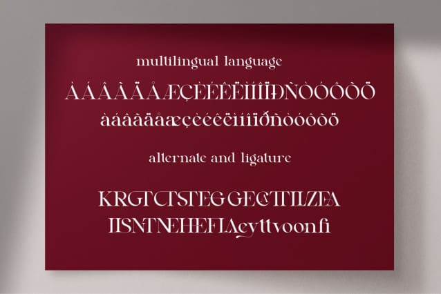 Qealiz Font is a serif font that exudes luxury and elegance. It draws attention and enhances any design. It is perfect for invitation card designs, company logos, movie titles, movie names, business cards, book titles, brand names, and many other designs. Qealiz Font is an elegant serif font that exudes sophistication and cohesion. Its stylish inflections and ligatures make it a perfect partner for any project.