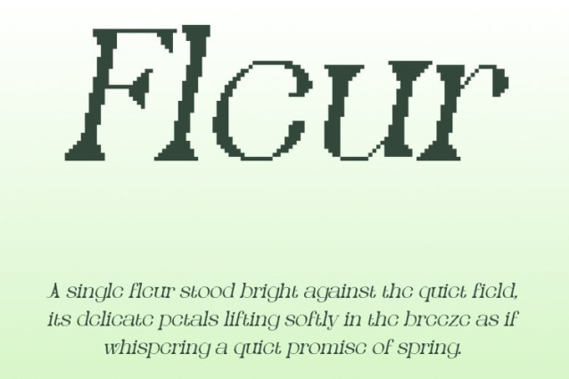 This font excels across both print and digital applications. From luxury packaging and high-end editorial layouts to sleek digital branding, it balances timeless sophistication with modern pixelated style. Its elegant serifs, refined curves, and digital twist make it a standout choice for projects that aim to merge tradition with contemporary, stylish innovation.