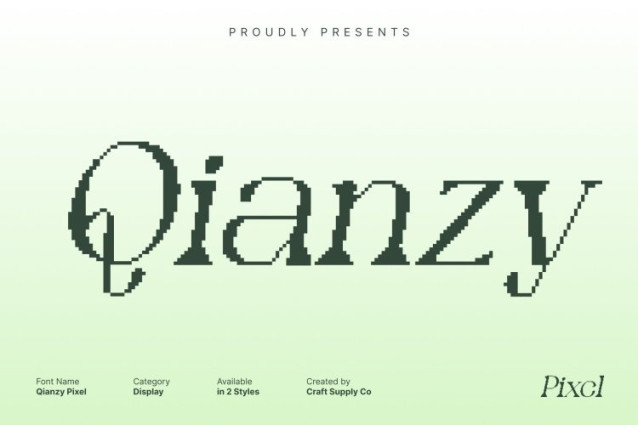 Qianzy Pixel Font This is an elegant serif font inspired by timeless Renaissance letterforms. Its refined curves and balanced proportions create a sophisticated, high-end appearance, making it ideal for designers seeking classic elegance with contemporary relevance. Perfect for advanced book layouts, editorial design, or luxury branding, Qianzy Pixel conveys professionalism and artistic finesse in every character.