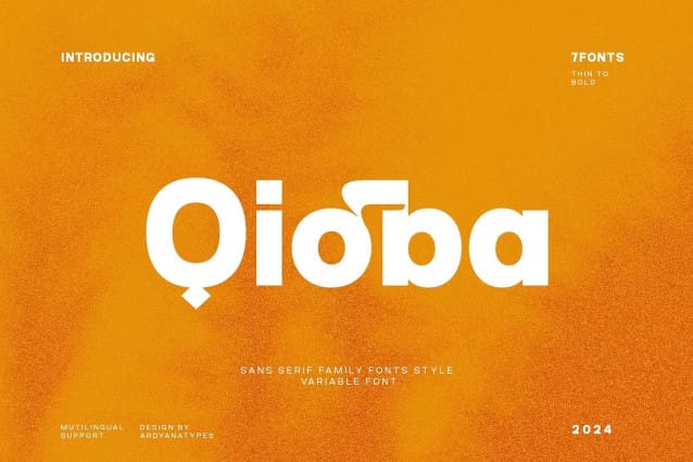 Qioba font also supports multiple languages, making it an ideal choice for various international needs. With its versatile design, Qioba is perfect for use in projects such as branding media, logos, movie posters, books, business cards, and many more.