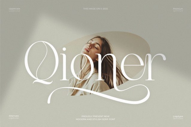 Qioner Serif is a modern and minimalist font type for all branding and logo designs. This modern and minimalist Serif font has a beautiful character. This font is suitable for invitation card designs, cool logos, movie titles, movie names, business cards, book titles, brand names, and various other designs. Qioner Serif is a smooth serif font that exudes sophistication and the moment. Its stylish ligatures make this font a perfect partner for any project.