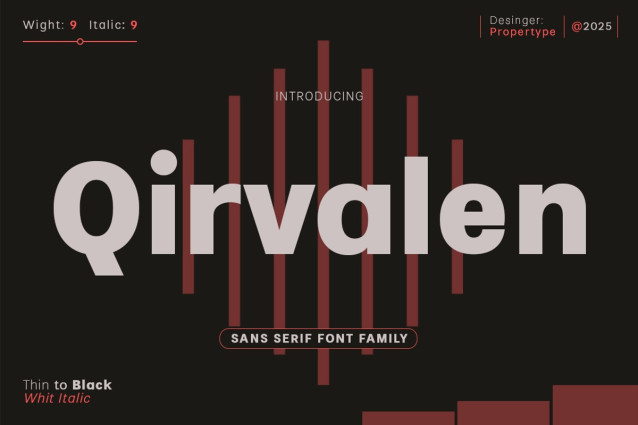 Qirvalen Font Family is a modern, contemporary, harmonious, and stylish serif typeface. It comes with a variable font, extending its use by providing weights ranging from Light to Extra Bold, creating a warm and soft design or appearance. The entire character set supports over 200 Latin languages. This versatility makes Qirvalen a perfect choice for a variety of applications such as editorial design, headlines, branding projects, logo design, packaging, magazine titles, advertising, and short or long texts.