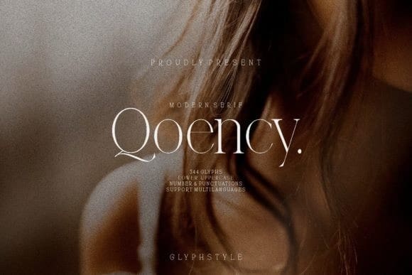 Qoency Font is a modern serif font. With thick and thin letter shapes, this font looks modern and elegant. Regular and italic versions are available. Qoency is perfect for branding projects, logos, wedding designs, social media posts, advertisements, product packaging, product designs, labels, photography, watermarks, invitations, stationery, and any project that requires a modern serif font.