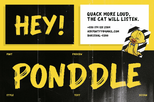 Designed to grab attention instantly, QuakDuck is perfect for posters, album covers, branding, logos, labels, packaging, apparel, and social media graphics. Its imperfect brush style adds movement, attitude, and artistic charm—making every word feel alive, dynamic, and full of personality.