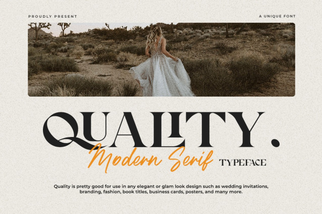 Quality Font – Classy Serif Font Many different types of serif fonts are available for all of us. Quality Classy Serif Font is one of the fonts with a modern, unique, and elegant look. This impression is what makes this font different from other serif fonts. Quality fonts have letter forms like other fonts that are firm but have long curved serifs. This font can be distinguished between letters easily. It can read clearly from a distance or near. The font is legible. Quality Classy Serif Fonts can use as digital and print fonts. The character of this font makes it one of the best fonts that have high compatibility when used for wedding invitations, branding, fashion, book titles, business cards, posters, and many others. The function must pay attention to the font size and theme. The elegant impression of the Quality Classy Serif font will make the product completed with the font have a high aesthetic value. It will look modern and attractive. With the presence of this font, it is hoped that it can increase your choices for serif font lovers in choosing the appropriate font for the object you are going to mix. Our collection of serif fonts is compatible for use as; Figma fonts, Canva fonts, Freepik Fonts, and Adobe Fonts. They also work as Windows Fonts and Apple Fonts. For your social media needs, you can use and install fonts in our collection of serif fonts to use as Instagram Fonts, Facebook Fonts, and Twitter Fonts.