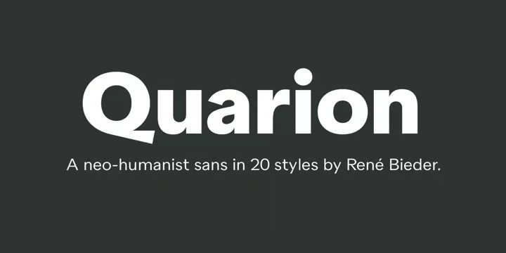 Quarion Font is a clean, neo-humanist sans with a contemporary geometric approach. Its design started as an exploration of geometric fonts from the early 20th century, like Futura, Neuzeit Grotesk or Recta which allows the typeface to generate an inviting but sophisticated feel on the page. Although, less contrasting, geometric designs have been quite popular around type designers until today, Quarion finds its niche by combining circular elements with a medium stroke contrast, resulting in a versatile and robust workhorse for any analog or digital application.