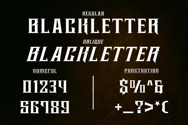 Quartus Font is a modern blackletter typeface that blends medieval aesthetics with a bold, contemporary edge. Unique and courageous, it features more than 300 glyphs, including multi-language support and oblique styles. Its strong, intricate letterforms exude both tradition and modernity, making it perfect for streetwear designs, posters, branding, and striking typography. Whether crafting a medieval-inspired project or adding a bold statement to modern visuals, Quartus delivers an unforgettable and fearless typographic experience.