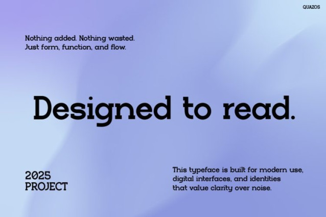 Futuristic Font Quazos is a modern display typeface designed for clean, intelligent, and minimalist design projects. First, its soft geometric shapes create a friendly futuristic feel. Then, its consistent stroke weight ensures visual harmony across compositions. Furthermore, the font pairs beautifully with gradients, soft colors, and spacious layouts. Because of this, Quazos works perfectly in tech branding, architecture presentations, digital products, and editorial design. In addition, the font supports strong hierarchy, making it effective for headlines, captions, posters, and modern typography systems. Ultimately, Quazos helps designers communicate ideas clearly while maintaining a futuristic identity.