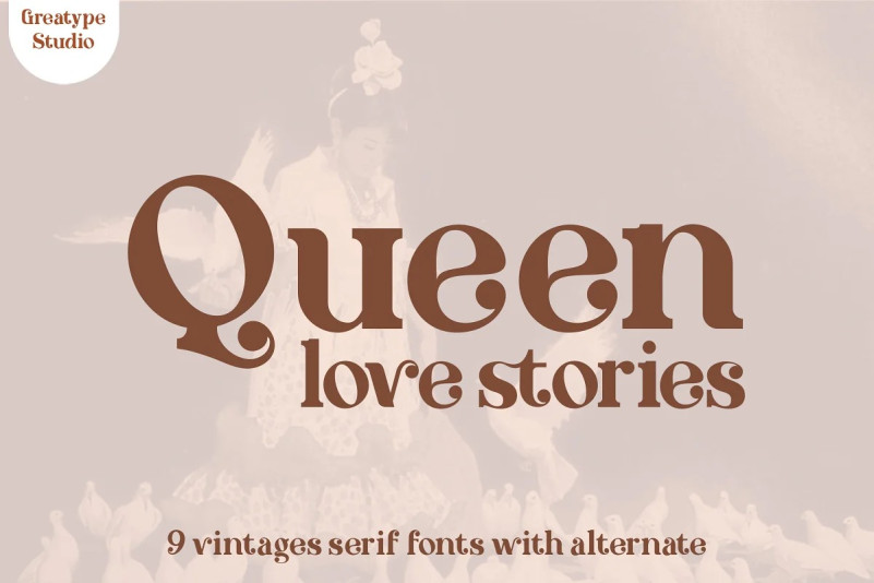 How outstanding! Queen Love Stories. A vintage serif font series inspired by the fonts of 70s.