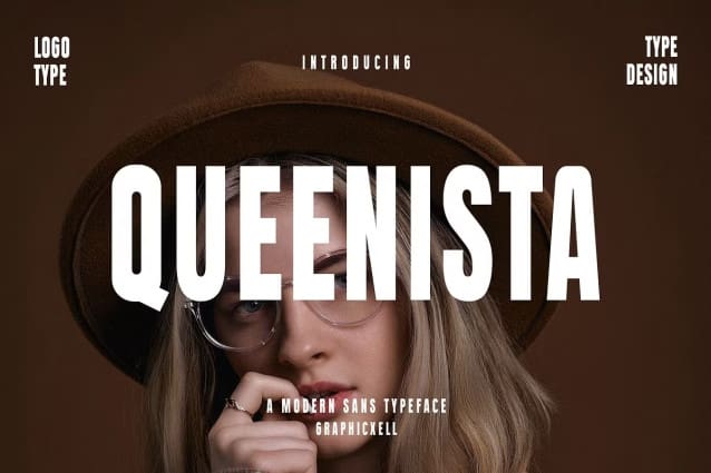 Queenista Font – Sans Serif Font inspired by the famous minimalist logo perfect for the purposes of designing templates, brochures, videos, advertising branding, logos, invitation, layout design, elegant crafting, beauty design and more.