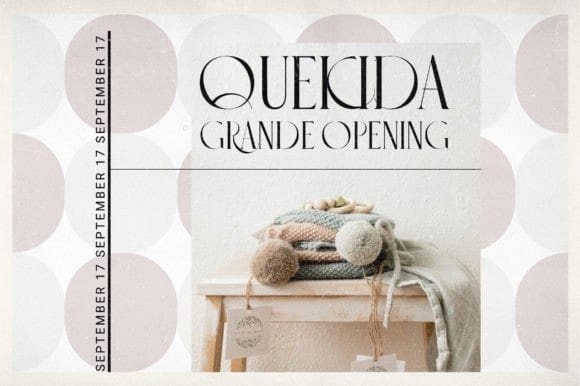 Quekida Font is a romantic, beautiful, elegant, and chic serif typeface. The contrast added between the sharp exterior glyph structure and the smooth interior glyph space or emptiness contributes to adding exceptional elegance to the final aspect of every character. It can be used in luxurious and elegant design themes such as luxurious packaging design, jewelry, fashion house, romantic film titles, luxury goods merchandise, etc.