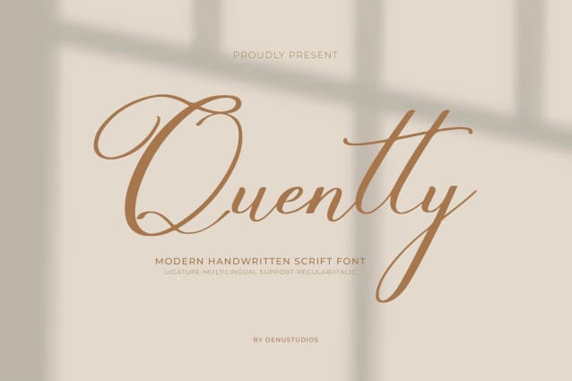 Quentty Script Font, dari Gracetypestudio, cocok untuk proyek apa pun seperti: logo, proyek branding, desain peralatan rumah tangga, kemasan produk, mug, quotes, poster, tas belanja, kaos oblong, sampul buku, kartu nama, kartu undangan, kartu ucapan, label , fotografi, tanda air, acara khusus, dan semua proyek indah Anda lainnya yang memerlukan cita rasa naskah yang indah.