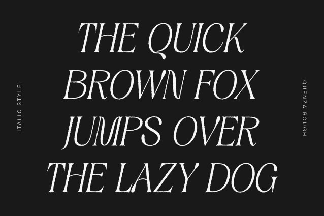 Perfect Blend of Classic and Contemporary Quenza Rough strikes a visual harmony between tradition and modernity. The refined serif forms reference timeless typography, while the rough surface gives it a modern, handmade edge—making it suitable for projects that seek to bridge elegance and authenticity.