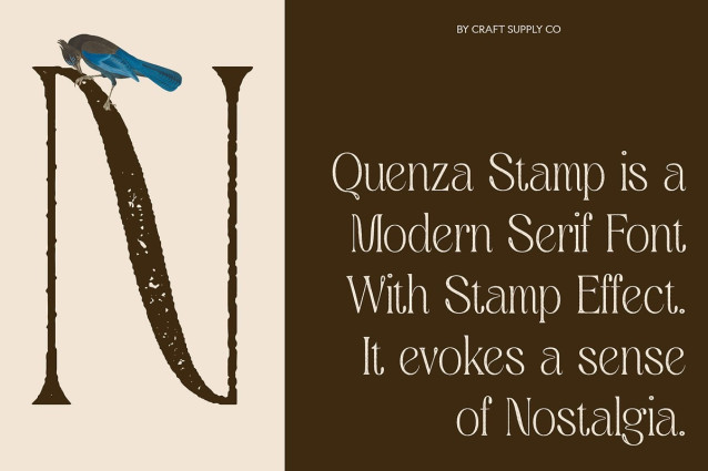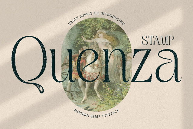 Quenza Stamp Font is a modern serif font that merges classic sophistication with a contemporary edge. Its refined structure and sharp serif detailing offer a clean, polished appearance—enhanced by a subtle stamp texture that adds depth, warmth, and tactile charm to every letterform.