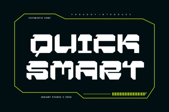Quick Smart Futuristic Font is a sharp, futuristic display font engineered for high-tech branding, sci-fi designs, and cutting-edge interfaces. With angular shapes, strong geometric lines, and a digital pulse, this font is built to stand out in modern tech spaces. Perfect for gaming, esports, robotics, or cyberpunk projects.