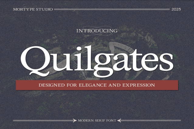 Quilgates Font is a classy serif font that brings elegance to your text. With its sleek lines and sophisticated curves, it adds a touch of refinement to any project. Perfect for fashion magazines, stylish invitations, or upscale branding, it exudes confidence and sophistication. Whether you’re aiming for a timeless look or a modern edge, this font is sure to elevate your design with its understated elegance.