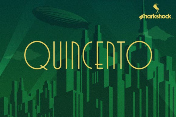 Quincento Font, pronounced queen-chento, is an Art Deco inspired font defined by its use of verticals and geometric shapes. This all caps display font alternates between sleek, thin curvature and sharp 90 degree angles. Rounded corners can be substituted in some instances by alternating between upper and lower case as well as alternate glyphs. Tall, undulating, and nostalgic, it captures the decorative vibe that dominated pop culture during the roaring twenties. Use it for a retro poster, restaurant logo, or Gatsby themed invites.