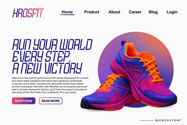 Quinoss Font is a dynamic modern sports font that brings speed, power, and clarity to your designs. Designed with a sleek athletic vibe, Quinoss blends bold forms with refined versatility, making it perfect for everything from esports and racing titles to fitness branding and energetic packaging.