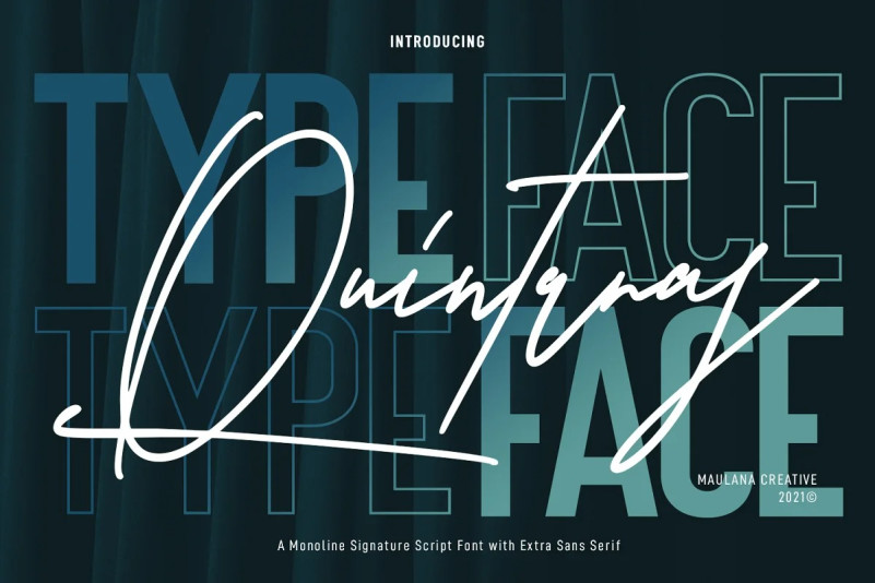 Quintaras Font Duo is a complete script and sans font duo. With expressive signature mono-line stroke and condensed sans solid and outline stroke, fun character with some of ligatures. To give you an extra creative work. Quintaras font support multilingual more than 100+ language. This font is good for logo design, Social media, Movie Titles, Books Titles, a short text even a long text letter. Make a stunning work with Quintaras font.