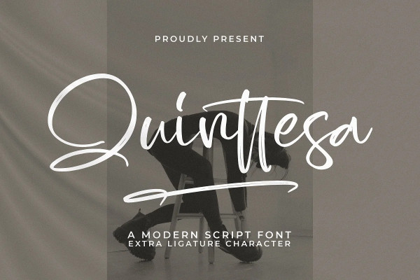 Quinttesa Script Font – Modern Script Font, from Integritype Studio, is a premium Modern Script Font, perfect for any project like: logos, branding projects, homewares designs, product packaging, mugs, quotes, posters, shopping bags, t-shirts, covers books, business cards, invitation cards, greeting cards, labels, photography, watermarks, special events and all your other luxury projects that require a premium taste.