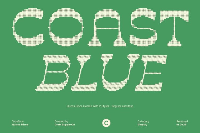 Quiros Disco Font This is a classic display font inspired by the bold, decorative letterforms of the 1970s. Its retro, groovy shapes and fluid curves instantly transport any design into an era of color, rhythm, and expressive typography. Every character embraces a playful, funky flow that feels energetic and full of personality, making it a true visual statement in any creative layout.