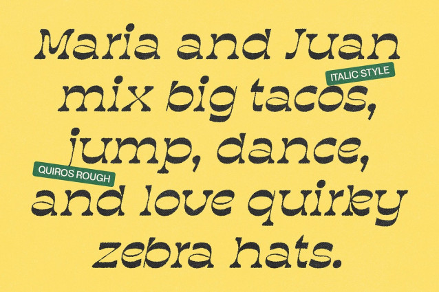 Rough Texture for Gritty Personality The rough texture finish brings a raw, handcrafted feel that adds depth and organic character. This tactile quality sets Quiros Rough apart from cleaner display fonts, making it feel more vibrant and authentic. It’s ideal for projects that want to inject a bit of imperfection and artistic flair, while still maintaining strong typographic structure.