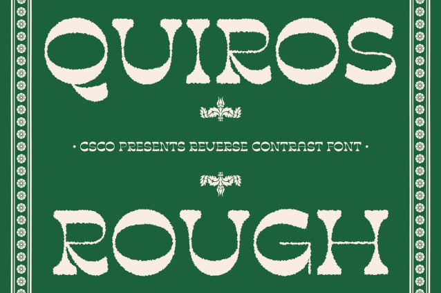 Quiros Rough Font is a display serif font that flips traditional stroke weights on their head. Featuring reverse contrast, where horizontal strokes are thicker than vertical ones, it delivers an unexpected and captivating visual rhythm. This design choice not only enhances uniqueness but also gives every letter a bold, expressive stance perfect for catching the eye.