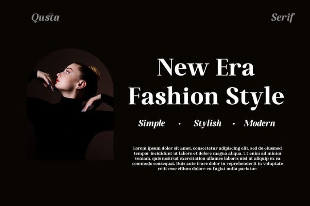 Qusta Font is a modern serif font that embodies elegance and charm in every character. It is perfect for luxury logos, branding, classy editorial designs, women’s magazines, cosmetic brand, promotional designs, the fashion industry, and more.