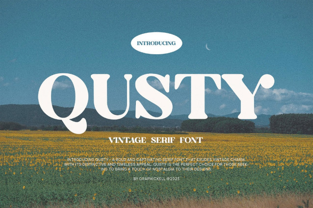 Qusty Font is a bold serif font that comes with a vintage charm. This bold serif font has a distinctive appeal with its captivating letterforms. What makes it interesting is that the edges of the letters are rounded and not sharp like other common serif fonts. Even though the emphasis is on the thickness of the line, some parts use thinner lines without reducing the solid look and impression. Considering its striking characteristics, the Qusty Elegant Serif Font Typeface is perfect for anyone who wants to add a touch of elegance to his design. The best idea is that to use this font for product design because it will be easy to notice, read and remember. In fact, its appearance stands out more than other serif fonts. More that that, using this font for advertisements, posters, and social media posts will also be a great idea.
