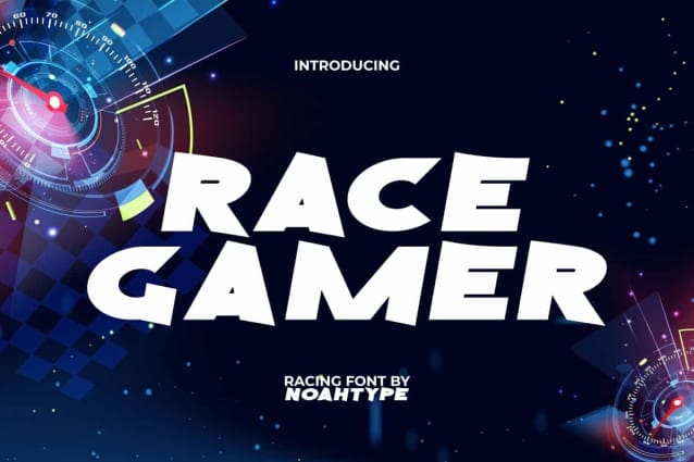 Race Gamer Font is a bold and playful racing font, created by NoahType. This font has a style that can be paired with other font types and the characters are clearly readable. It will be good for any designs, such as billboard, brand image, custom design, invitation, label, marketing material, menu, poster, product packaging, quotes, signage, stationery, web, and many more!