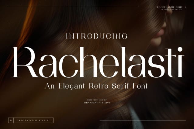 Rachelasti Font is an exquisite and timeless serif font that effortlessly merges elegance with a nostalgic retro charm. With its gracefully elongated letterforms and subtle, sophisticated serifs, Rachelasti evokes a sense of refined vintage aesthetics, making it a perfect choice for projects that demand a touch of classic sophistication. The typeface exudes a distinct personality, blending a timeless appeal with a modern edge, making it versatile for various design applications. Whether used in editorial layouts, branding, or signage, Rachelasti’s carefully crafted details and balanced proportions convey a sense of understated luxury and enduring style.
