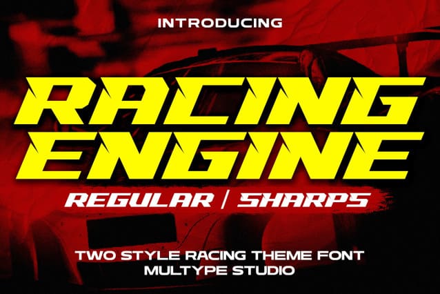 Racing Engine Font is a font with a racing theme that has two styles. Sharps Version: The slant and precise cut shapes make this font stand out clearly and make it look strong and fast.